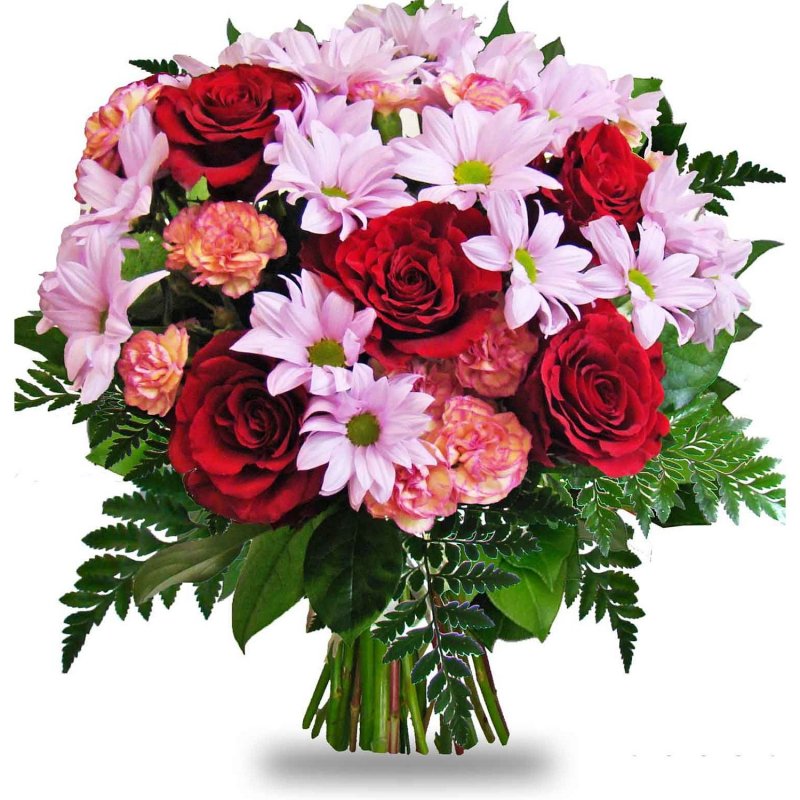 | Standardní | 5 ks růže, 2 ks chrysantéma, 3 ks trsový karafiát a dekorativní zeleň |