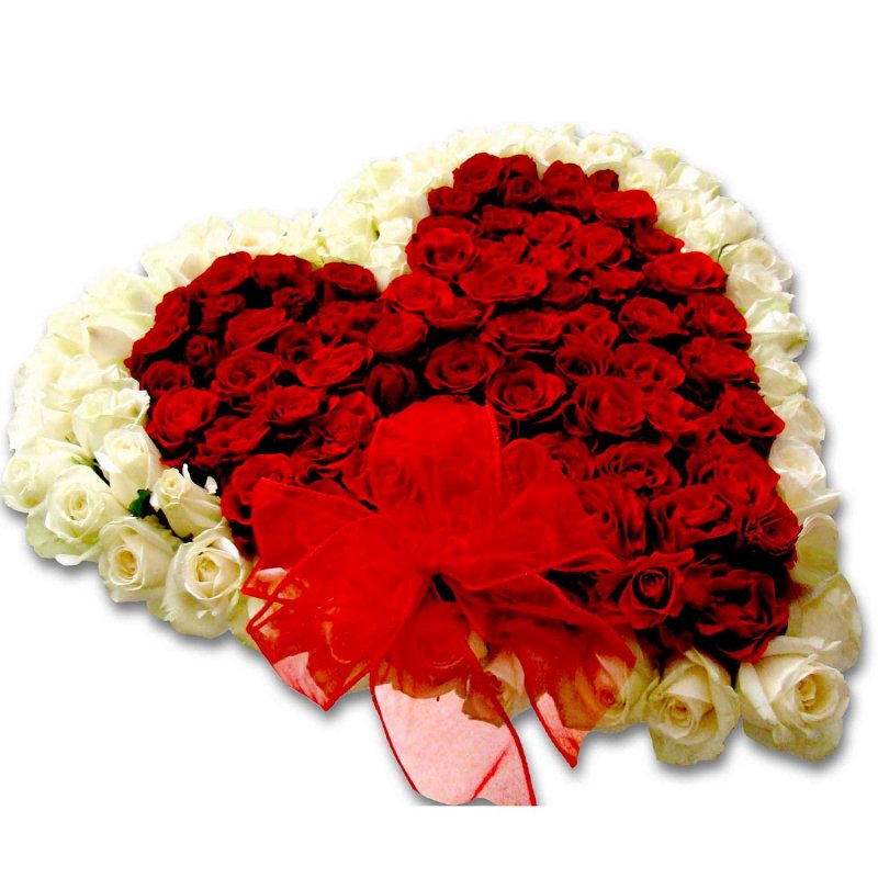 Velká 140 ks růží, mašle. Rozměr aranžmá cca. 60 x 60 cm