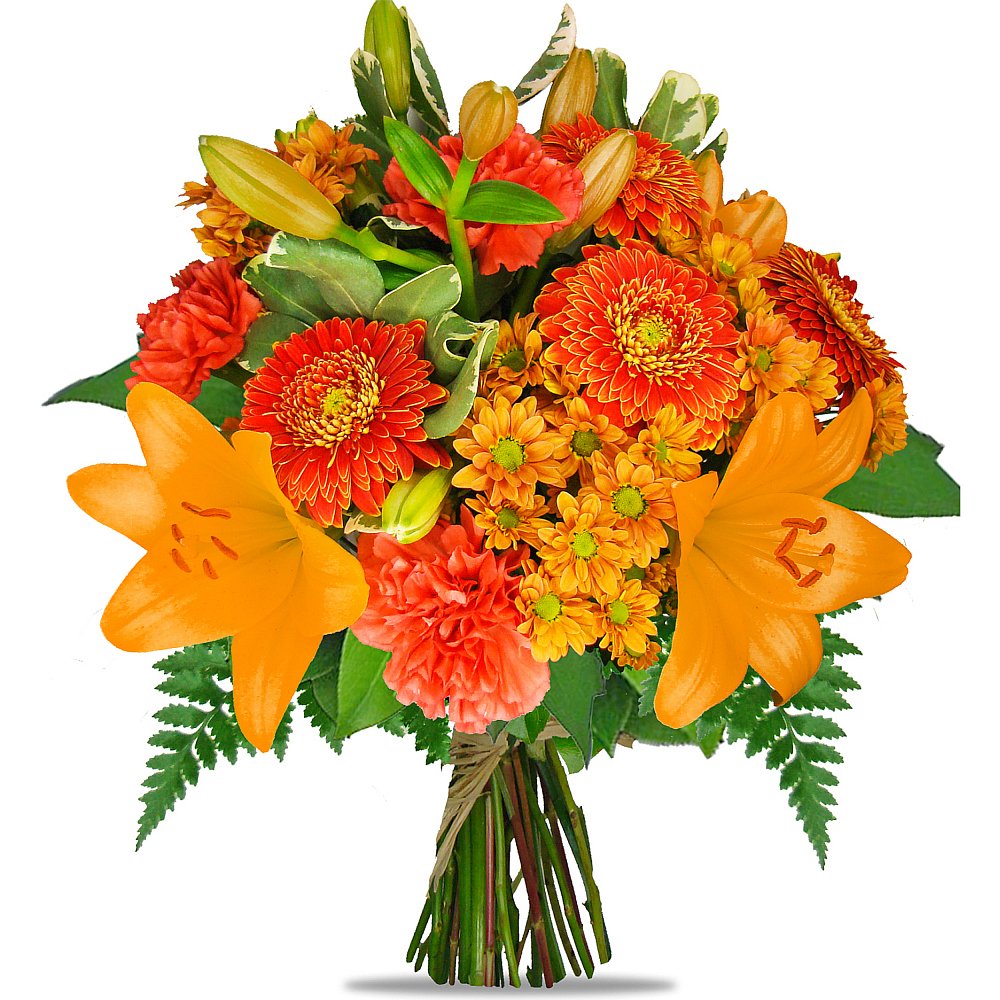 | Exkluzivní | 4 ks lilie, 4 ks germína, 4 ks karafiát, 3 ks chrysantéma a dekorativní zeleň (pistacie, rumora, salal) |