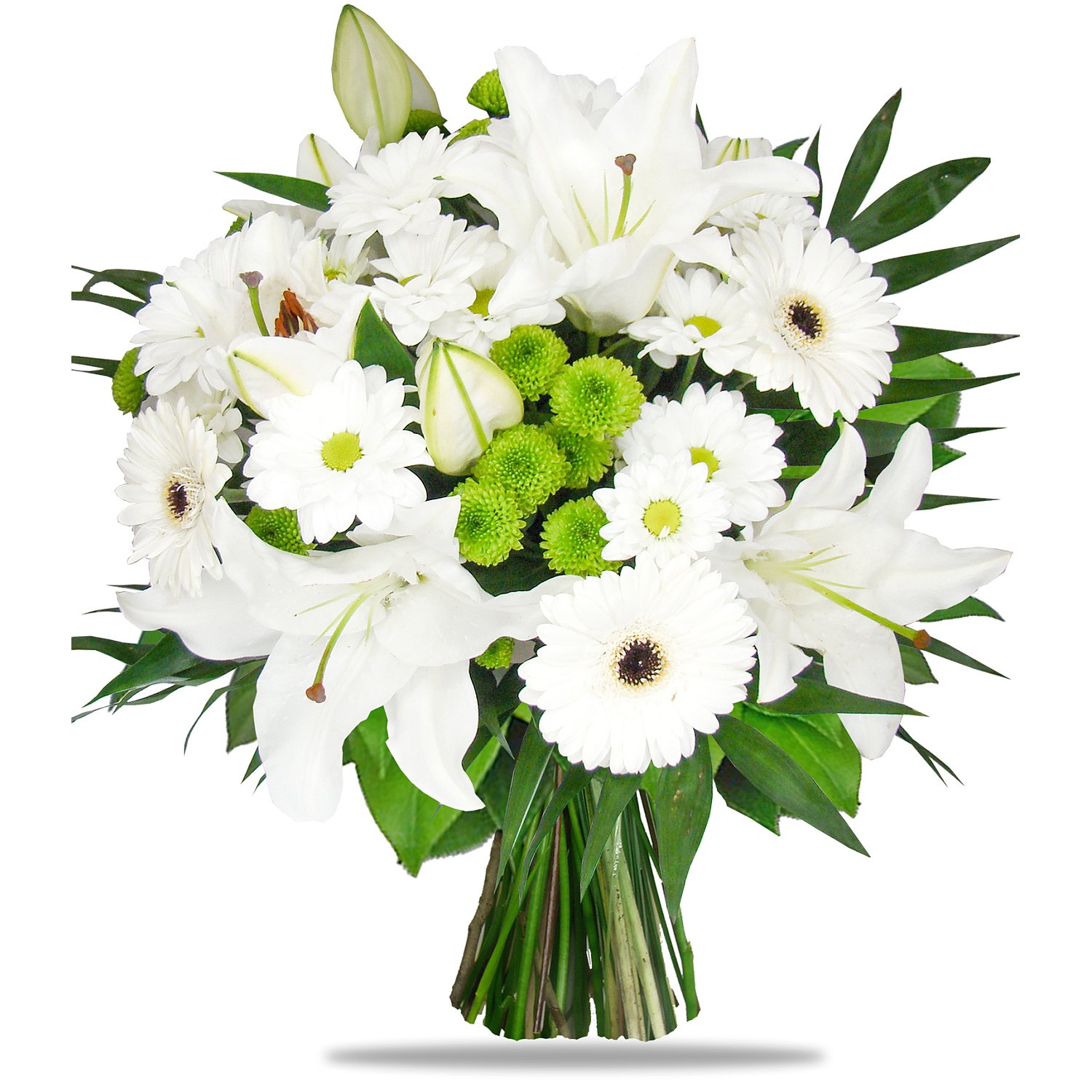 Exkluzivní 3 ks královská lilie, 5 ks germína, 4 ks chrysantéma santini a dekorativní zeleň