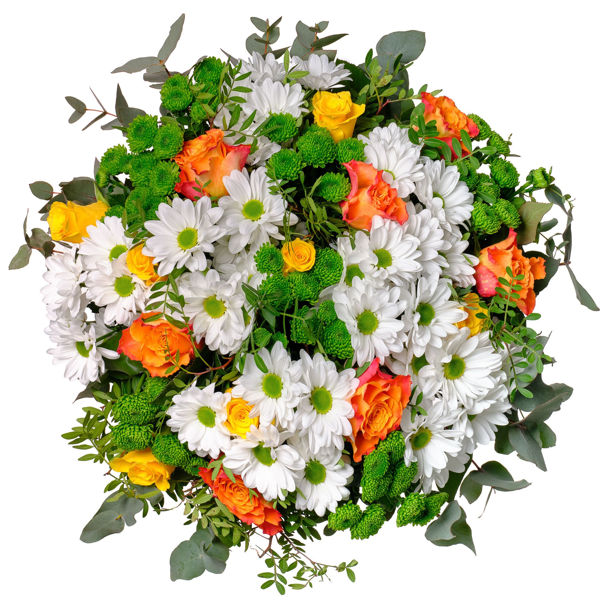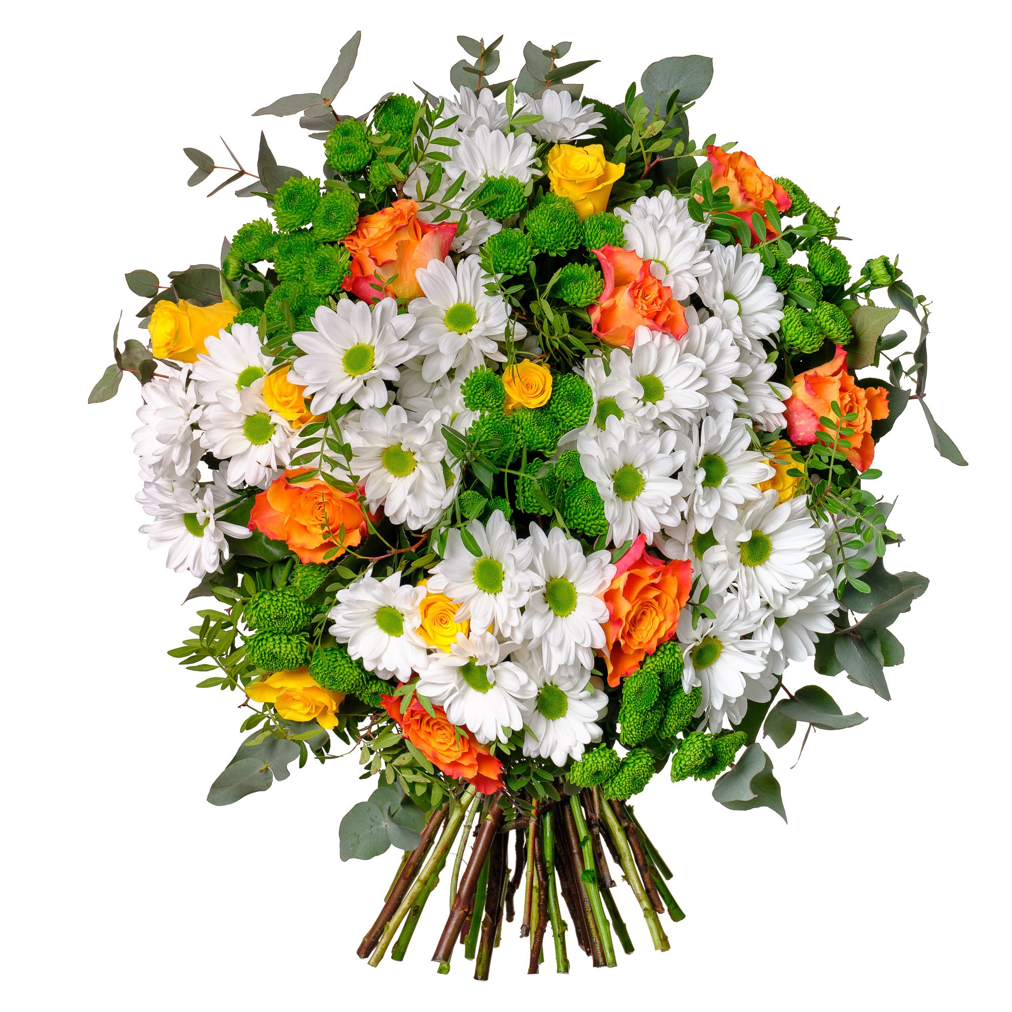| Standardní | 6 ks růže, 3 ks chrysantéma, 4 ks santini a dekorativní zeleň (pistacie, salal, eukalyptus) |