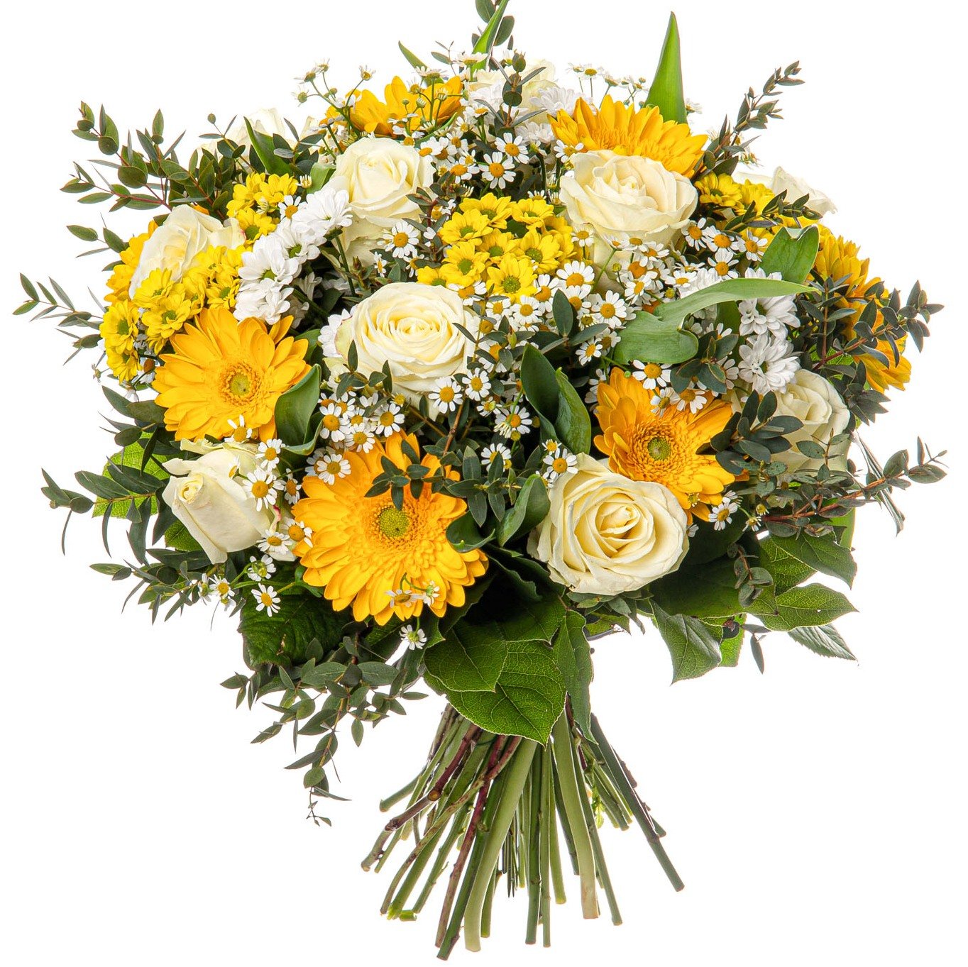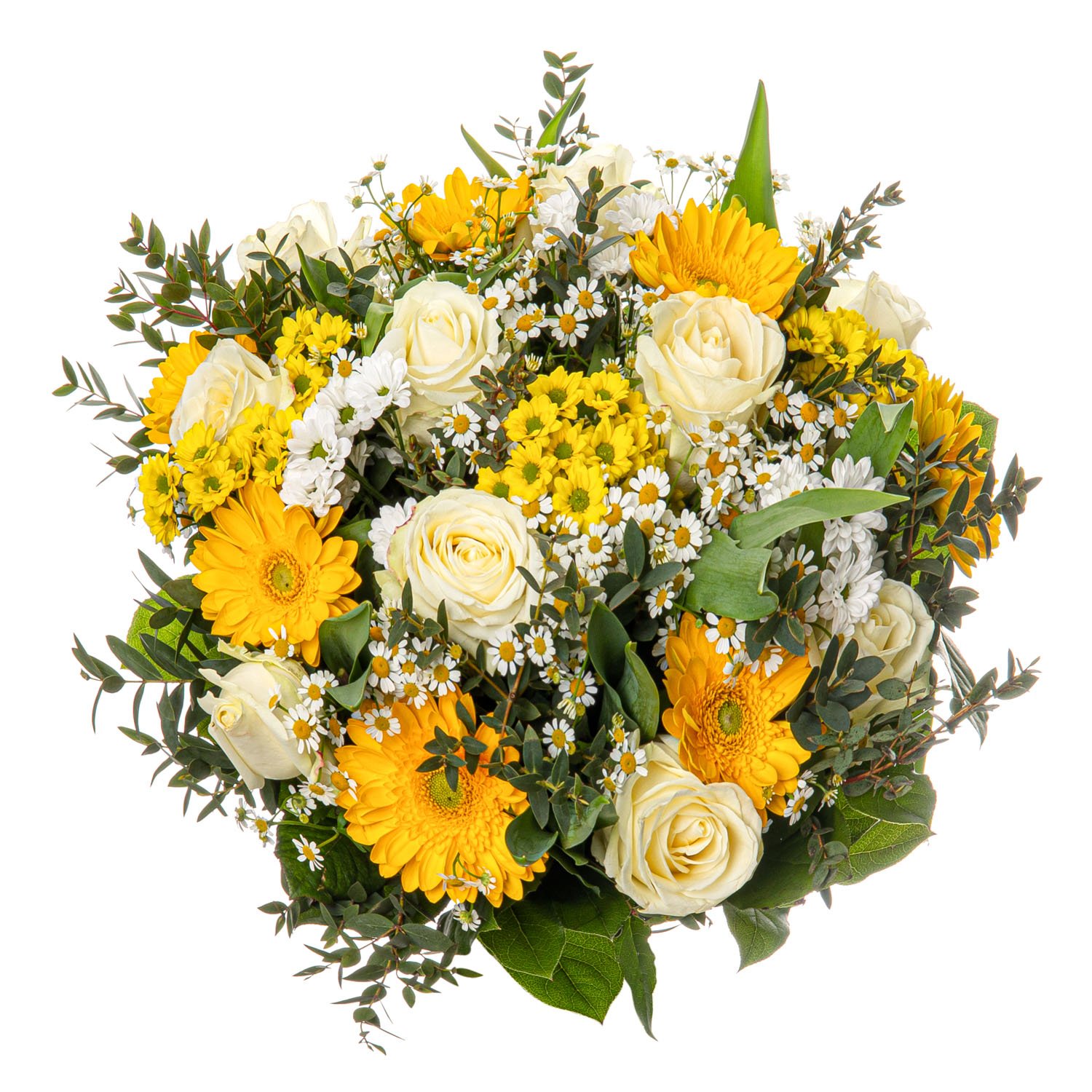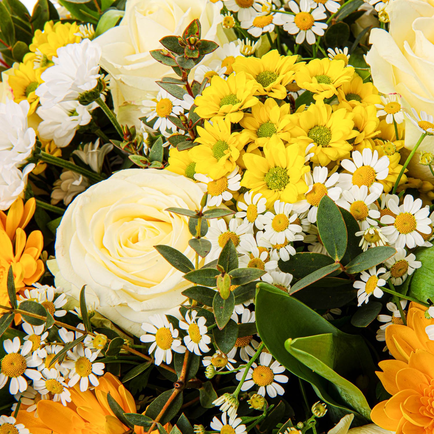 | Exkluzivní | 7 ks gerbera mini, 9 ks růže, 6 ks chrysantéma, 5 ks heřmánek a dekorativní zeleň |