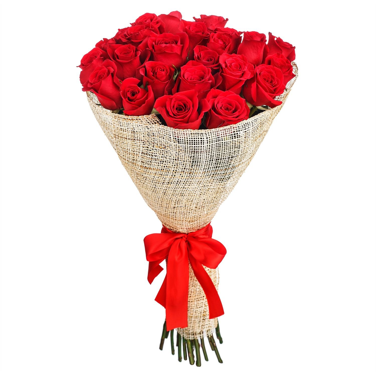 24 ks červených růží, okrasná mašle a luxusní manžeta