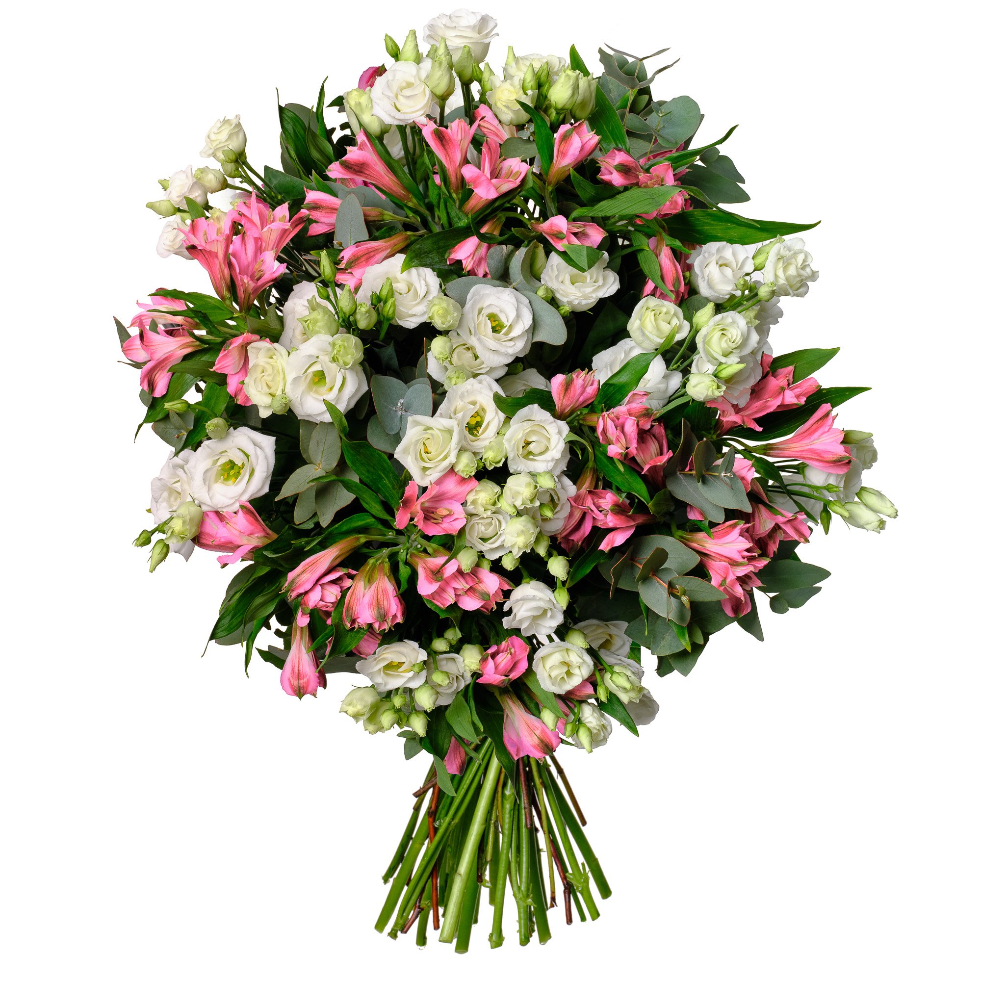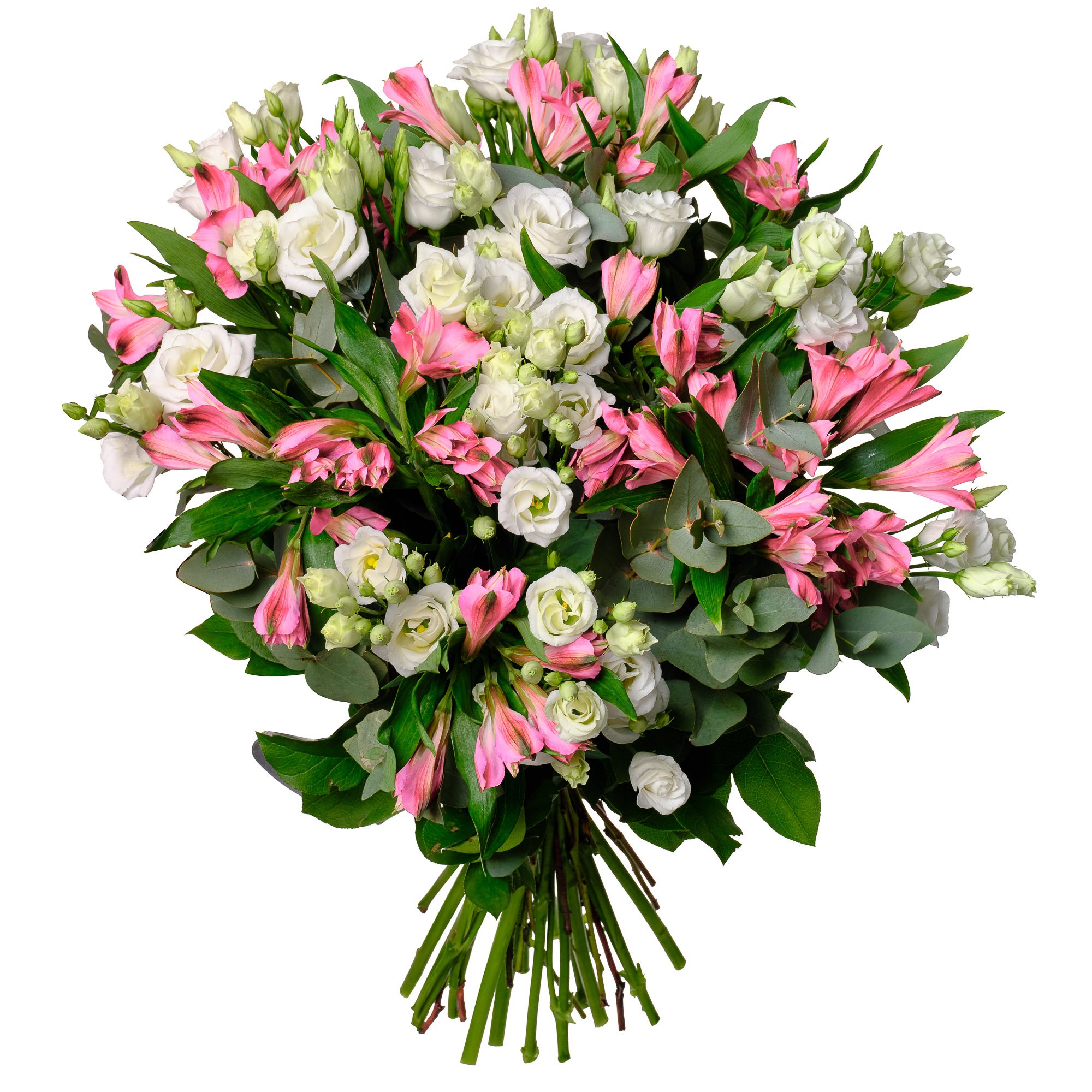 Exkluzivní 10 ks alstromeria, 10 ks eustoma a dekorativní zeleň (eukalptus, salal)